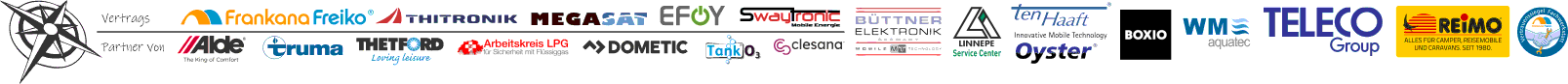Partner FrankanaFreiko Reimo Thitronik Cara Control Mega Sat Swaytronic Linnepe Ten Haaft Büttner Elektronik WM Aquatec Alde Truma Dometic Thetford Arbeitskreis LPG Efoy Clesana Teleco Group SpA